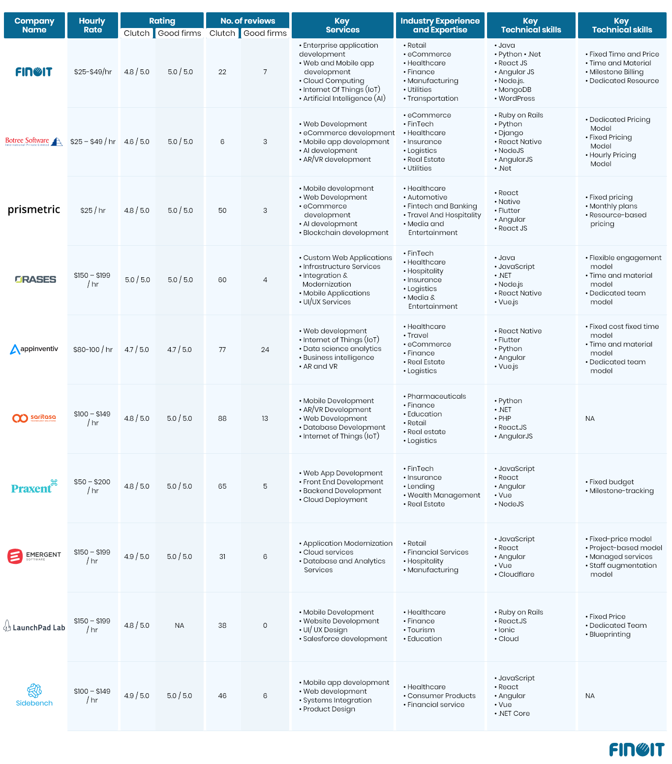 Choosing any of them will help you offload the crucial tasks of building your in-house software development team. However, we recommend carefully screening the capabilities and competencies of each to match your requirements so that you identify the best of the bunch.